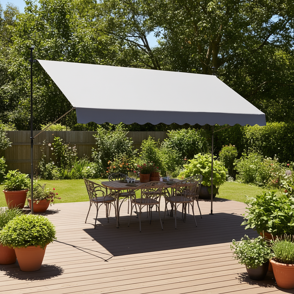 กันสาดซันไชน์ 138x47 นิ้ว แบบพับเก็บได้ พร้อมมือหมุน สำหรับกันแดดในสวนกลางแจ้ง ดีไซน์แขนพับ