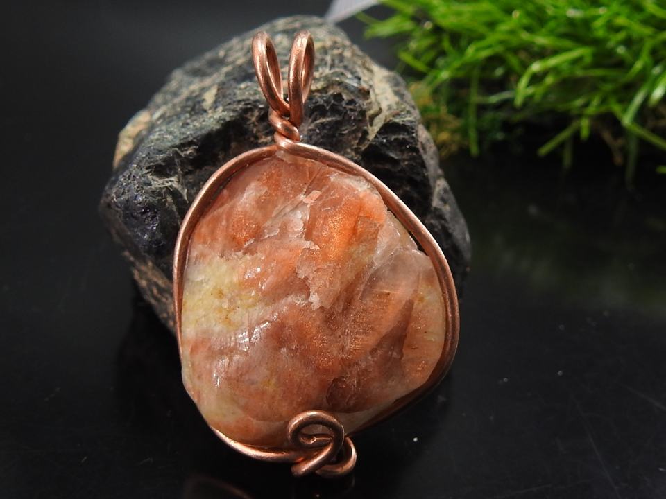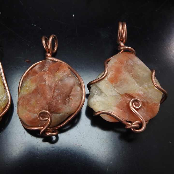 ซันสโตนธรรมชาติลวดหยาบทองแดงห้อยจี้เครื่องประดับดิบของขวัญสำหรับเธอขายส่ง