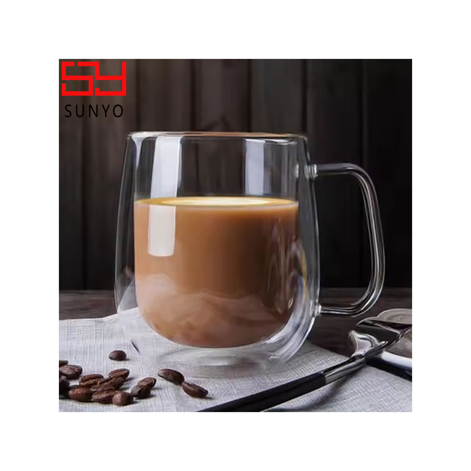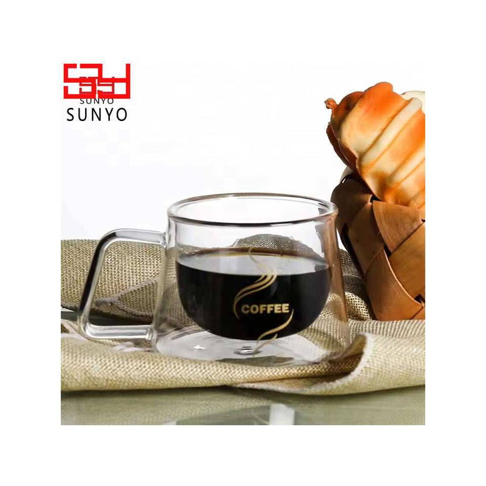 แก้วกาแฟซันโย 2024 ดีไซน์สุดฮิต รองรับการสั่งทำโลโก้สีทอง แก้วกาแฟแบบสองชั้น ป้องกันความร้อน ใช้ซ้ำได้