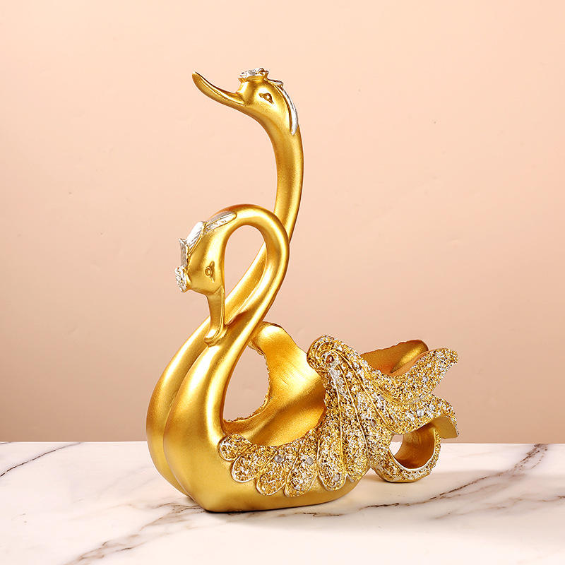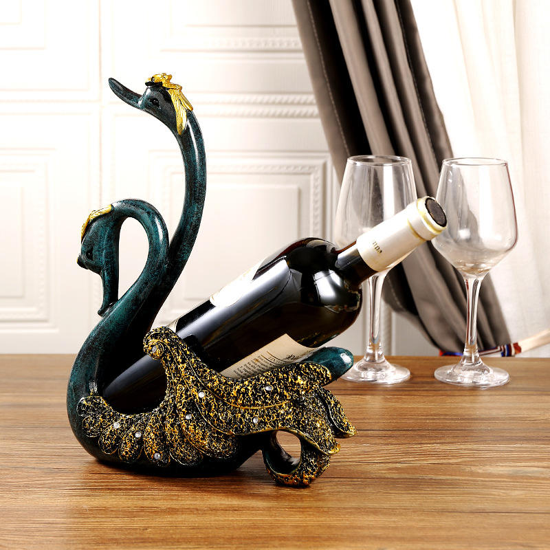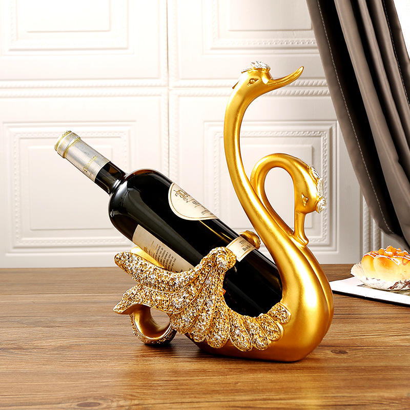Suo Jun หงส์ชั้นวางไวน์เรซิ่นสีทองที่วางขวดตกแต่งทันสมัยสำหรับโต๊ะอาหารที่บ้าน