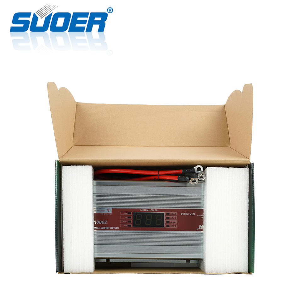 อินเวอร์เตอร์ Suoer 12vdc เป็น 220vac 2000W แบบโมดูลาร์ สำหรับพลังงานแสงอาทิตย์ พร้อมหน้าจอ LED