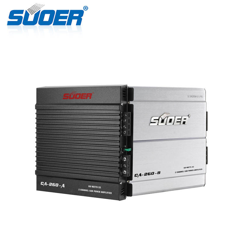 Suoer CA-260-A ราคาต่ำรถแอมป์นั่งบนรถ2ช่องชั้น Ab เกาหลีรถ12โวลต์เพลงเครื่องขยายเสียง
