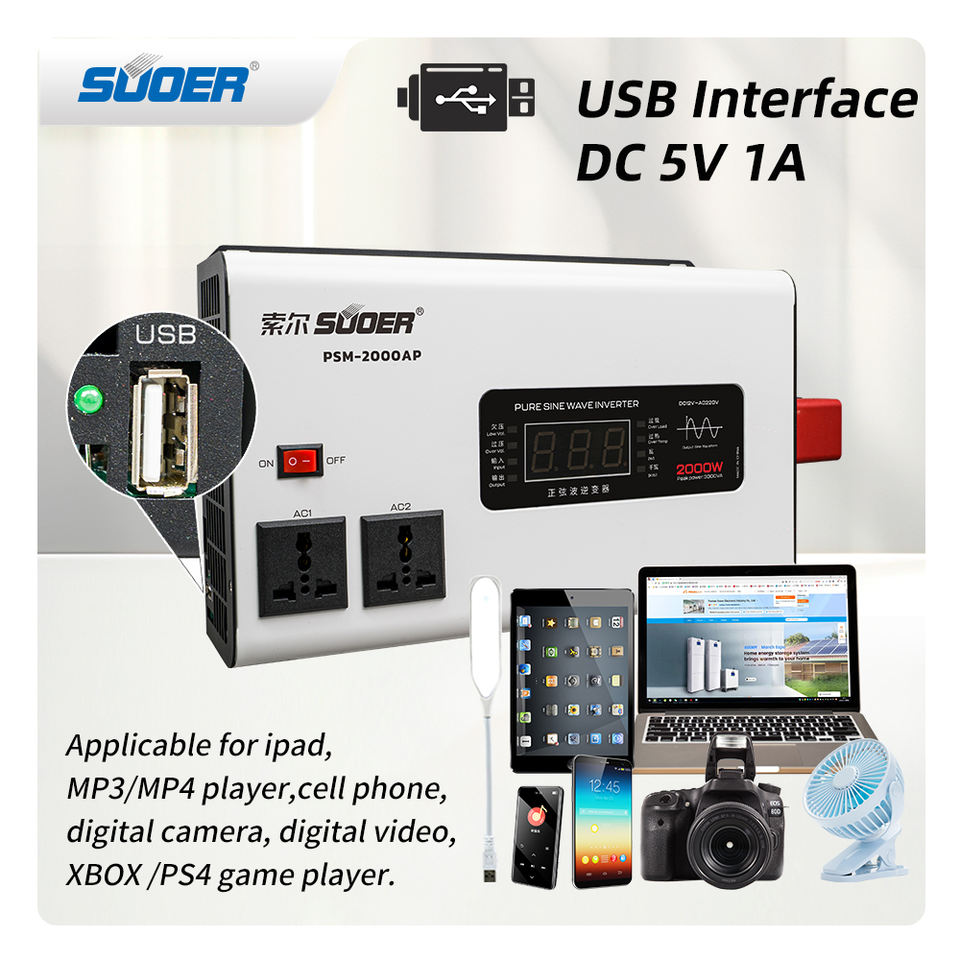 Suoer อินเวอร์เตอร์พลังงานแสงอาทิตย์12V 24V 48V DC เป็น AC 220V PURE sine WAVE VDF อินเวอร์เตอร์พลังงานแสงอาทิตย์รถอินเวอร์เตอร์