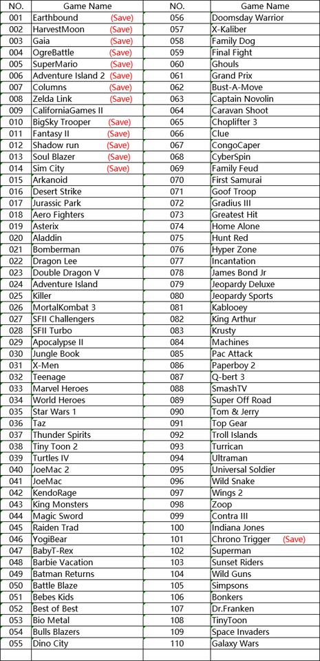 สำหรับ Super Nintendo Entertainment Systemแพลตฟอร์มที่รองรับ