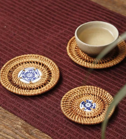 ที่วางแก้วเครื่องลายครามหวายกันลื่นซุปเปอร์ดูดซับ ผู้ถือแก้วเครื่องลายครามหวายทรงกลมในราคาขายส่ง
