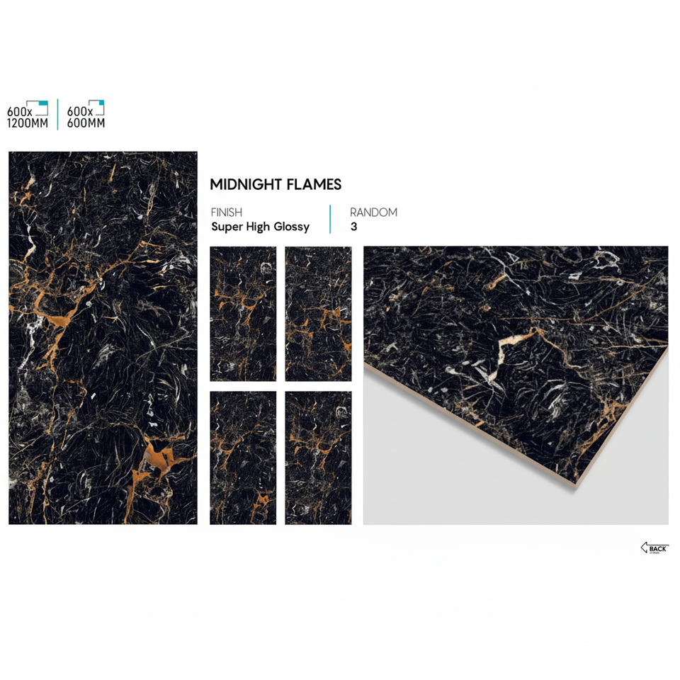กระเบื้องพอร์ซเลนสีดำเงาสูง 60x120 ซม. โซลูชั่นพื้นและผนังขัดเงาสุดหรู