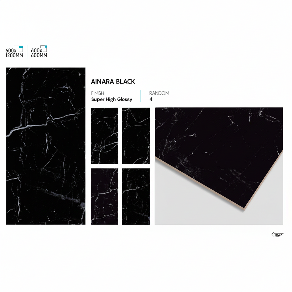กระเบื้องพอร์ซเลนสีดำเงาสูง 600x1200 มม. กระเบื้องปูพื้นและผนังสำหรับโครงการตกแต่งภายในสไตล์โมเดิร์น