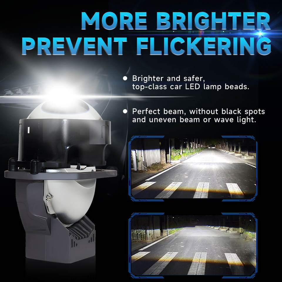 ไฟหน้า LED แบบ Bi-Projector ขนาด 3 นิ้ว 65W 8000 ลูเมนส์ 6000K สว่างพิเศษ พร้อมเลนส์เปลี่ยนได้ กันน้ำ IP68 12V อะลูมิเนียมใหม่