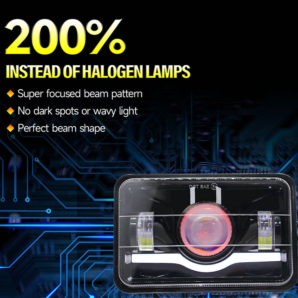 ไฟสปอร์ตไลท์ขับขี่แบบซุปเปอร์ไบรท์ ขนาด 5.75 นิ้ว 45 วัตต์ 4500 ลูเมน 6000K ไฟหน้า LED แบบซีล ไฮ/โล พร้อมไฟเดย์ไลท์รูปดวงตาปีศาจสีแดง ใช้ได้กับรถยนต์ทั่วไป