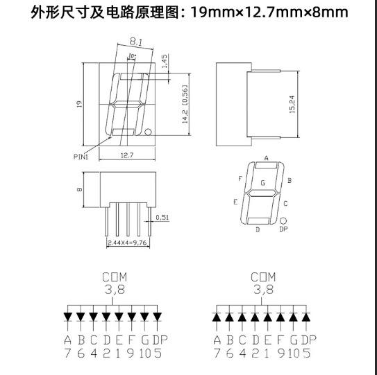 จอแสดงผล LED แบบหลักเดียวขนาด 0.56 นิ้ว รุ่น Super Bright 5611, แสงสีแดง/น้ำเงินความเข้มสูง, ขั้วบวก/ขั้วลบแบบทั่วไป