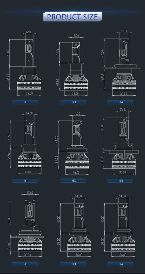 H11, H1, H3, H4, H7, 9005, 9006, H13, 9004, 9007, 9012