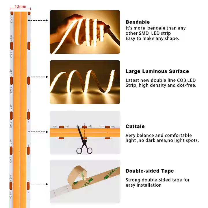 แถบไฟ LED สว่างสูงสองแถว DC24V LED 960ดวง/ม. 12มม. 20ม. ซังยืดหยุ่นไม่ลดแรงดันไฟฟ้าสำหรับให้แสงสว่าง
