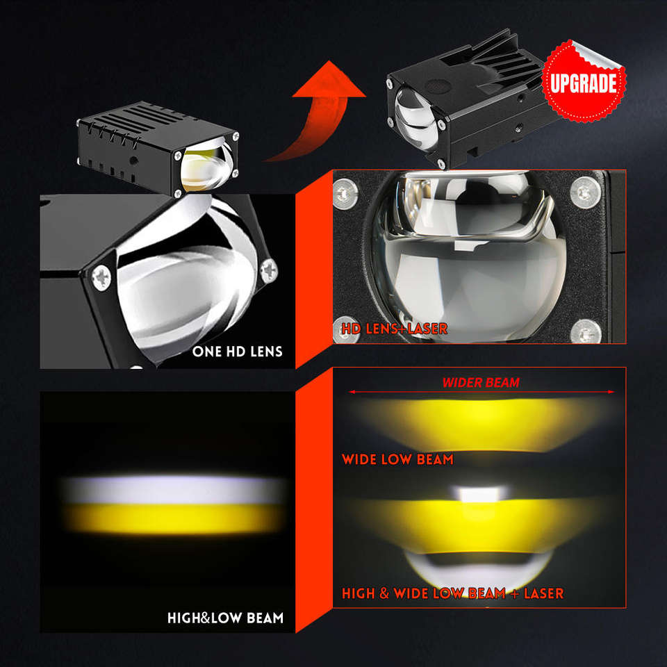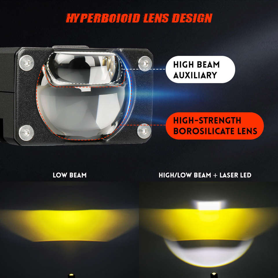 ไฟหน้า LED สีคู่สว่างพิเศษ ไฟตัดหมอก ไฟขับขี่ ไฟเลเซอร์มอเตอร์ไซค์ขนาดเล็ก ไฟขับขี่ขนาดเล็ก อุปกรณ์ตกแต่งรถยนต์