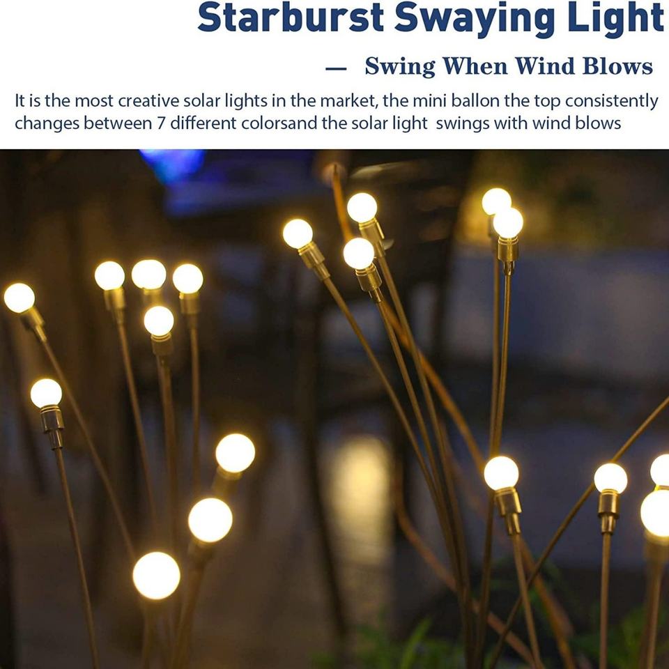 ไฟสวนพลังงานแสงอาทิตย์แบบยืดหยุ่นสูง สว่างพิเศษ รูปทรงดาวกระจาย 8 LED ไฟตกแต่งภูมิทัศน์ ไฟหิ่งห้อยพลังงานแสงอาทิตย์