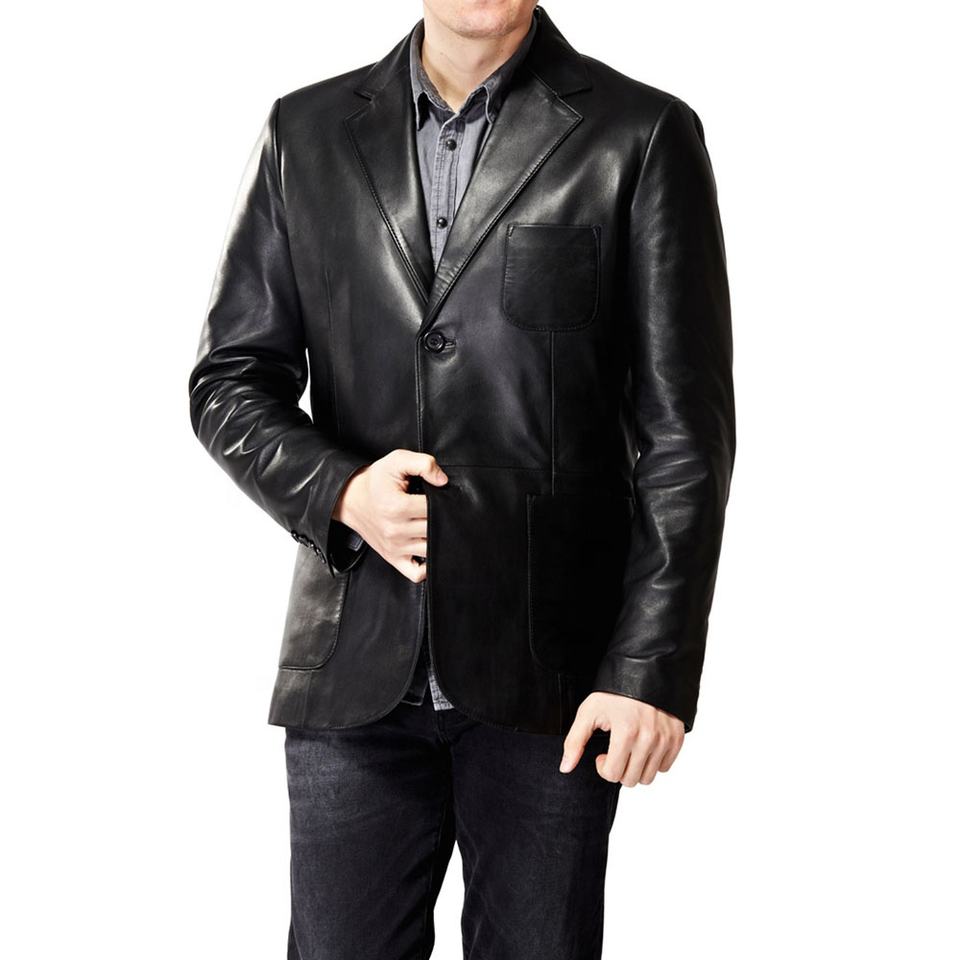 แจ็กเก็ตสไตล์เสื้อโค้ทหนังสีดำของบุรุษ,แจ็กเก็ตสไตล์หนังแกะแบบดั้งเดิมปี100% ปิดด้วยกระดุมด้านหน้า