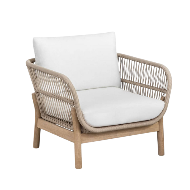 เก้าอี้พักผ่อนในสวนแสนสบาย โครงไม้สักและเชือก พร้อมเบาะกันน้ำถอดได้ เฟอร์นิเจอร์สำหรับบ้าน