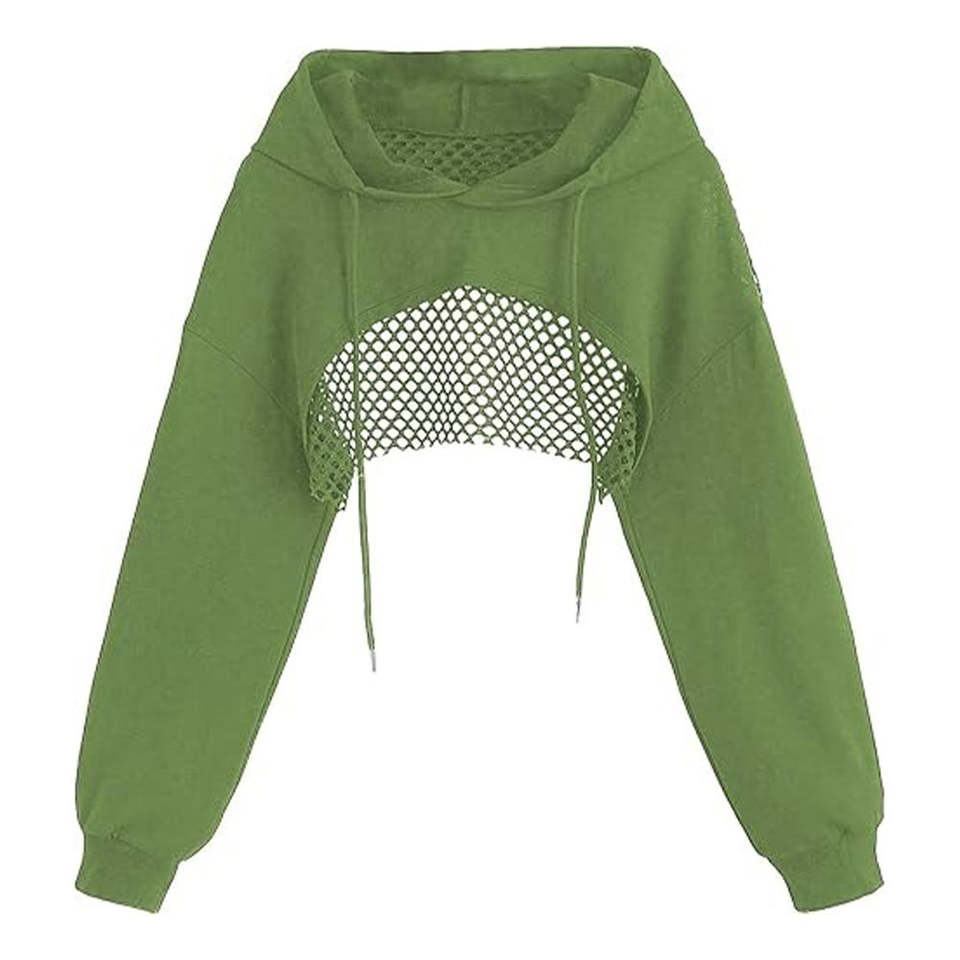 Super Crop Sports Fleece Hoodie Solid Winter Breathable Casual Cami Top Drop Shoulder Hollow Hooded Collar