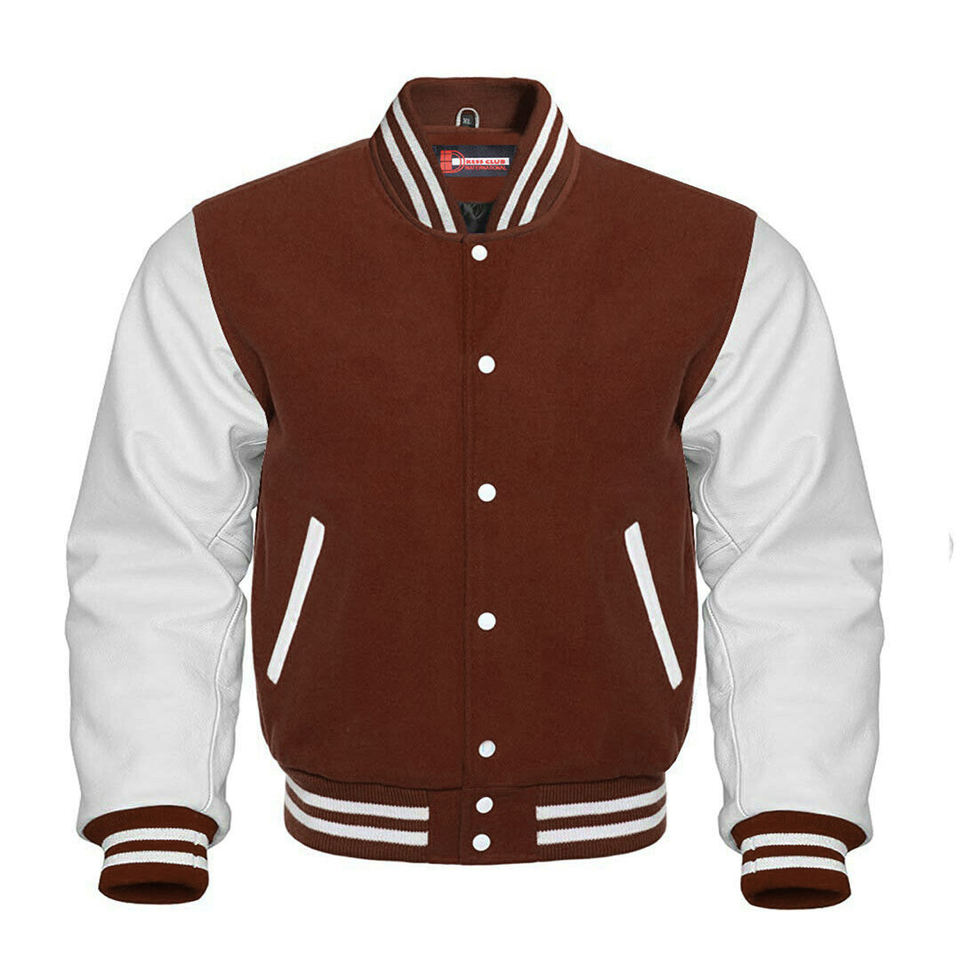 แจ็กเก็ตทีมตัวแทนขนสัตว์สีน้ำตาลและดำปกหนังแท้สไตล์สินค้ามาใหม่