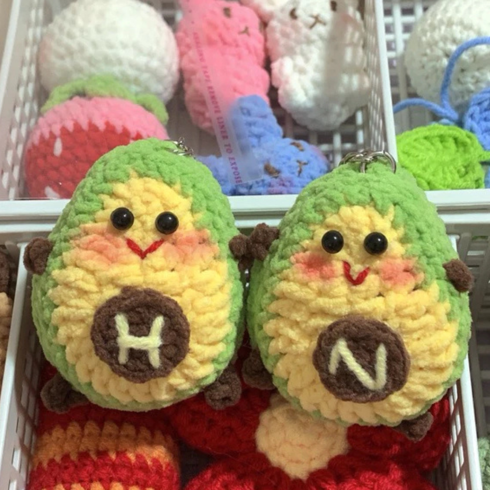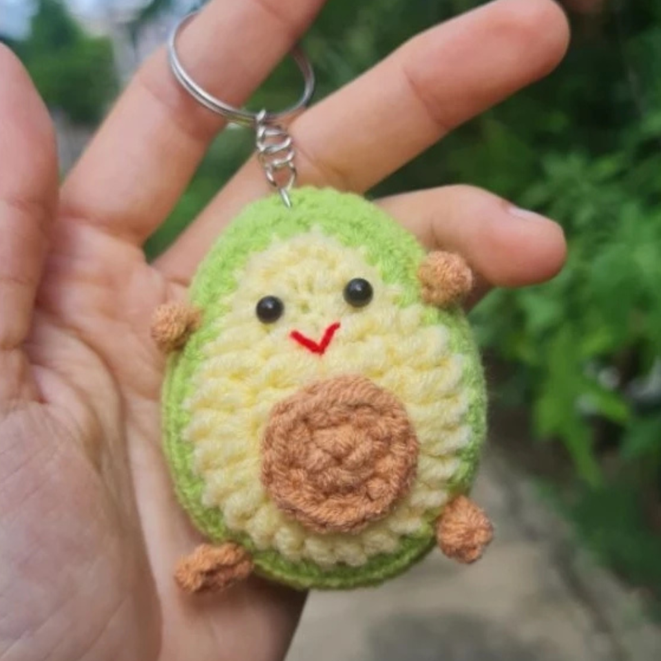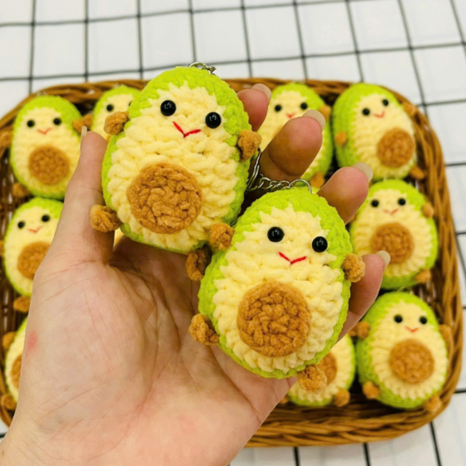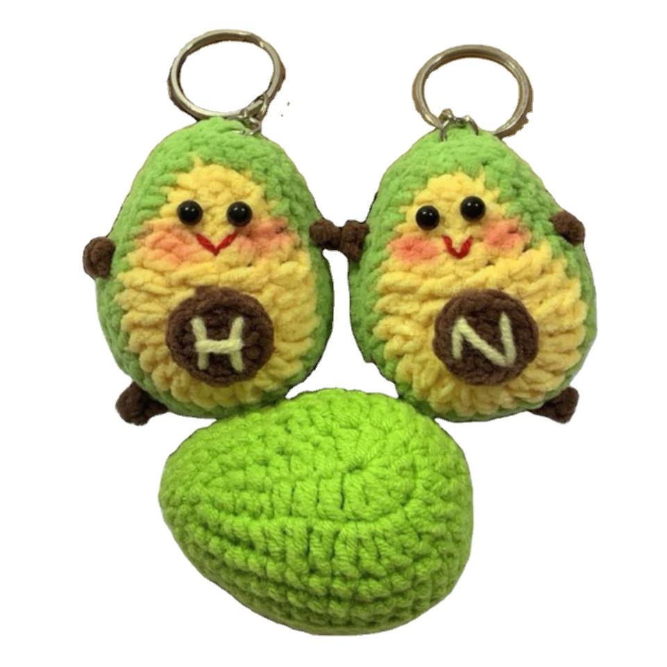 ห่วงถักไหมพรมกำมะหยี่น่ารักมากสำหรับตกแต่งรูปสัตว์น้อยห่วงโซ่ตุ๊กตาทอมืออะโวคาโดสไตล์การ์ตูน
