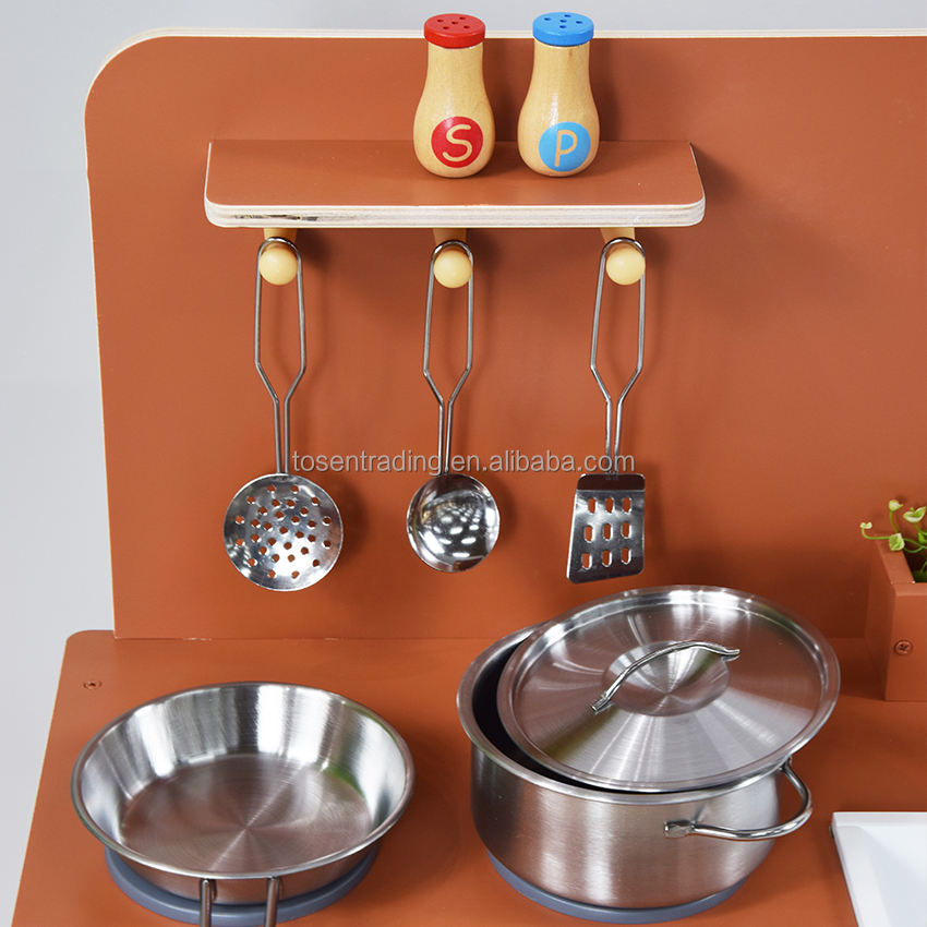 ชุดครัวไม้ของเล่นเด็กสุดน่ารัก สำหรับเด็กอายุ 2-7 ปี พร้อมอุปกรณ์ทำอาหาร อ่างล้างจาน และก๊อกน้ำ