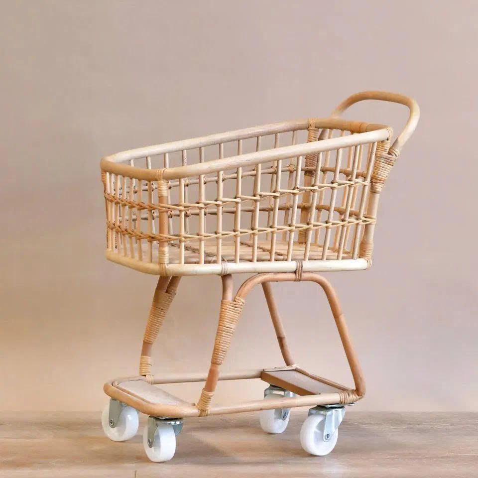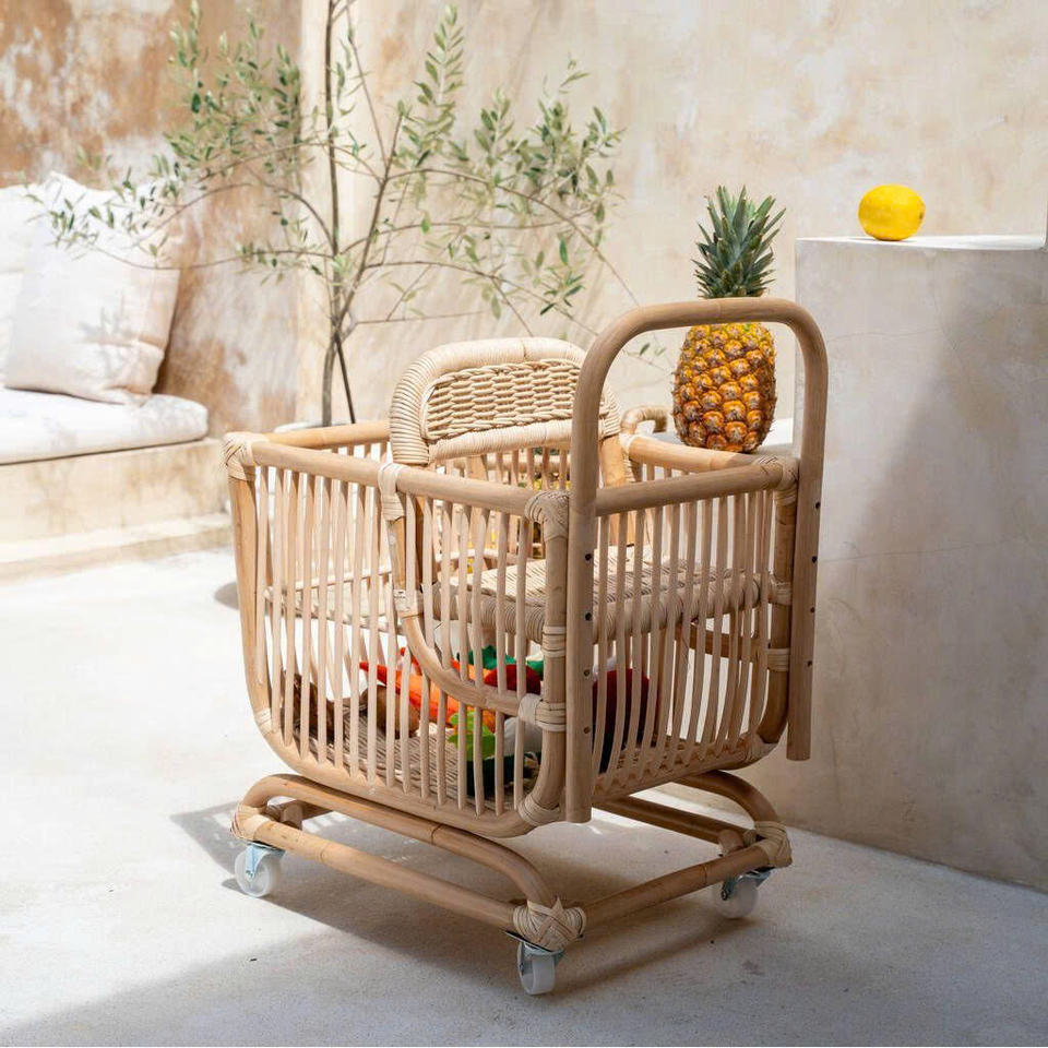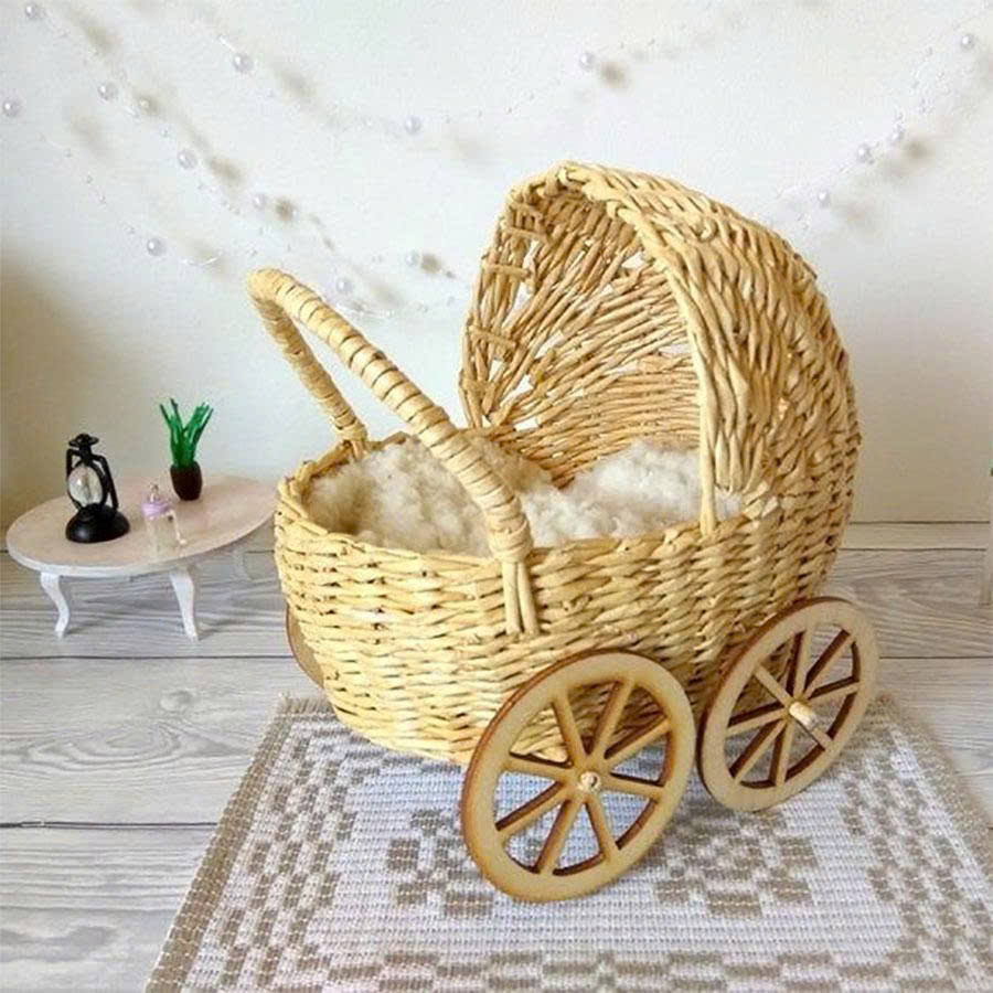 รถเข็นหวายสุดน่ารักสำหรับตุ๊กตาเด็ก ออกแบบ OEM สำหรับเด็กทารก ผลิตด้วยมือจากเวียดนาม ขายส่งจากโรงงานโดยตรง