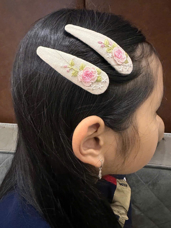 กิ๊บติดผมปักลายดอกไม้สีชมพูและสีเขียวน่ารักสไตล์หวานสุดๆของขวัญคริสต์มาสขายดี
