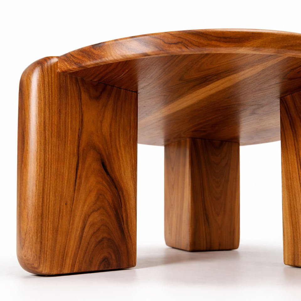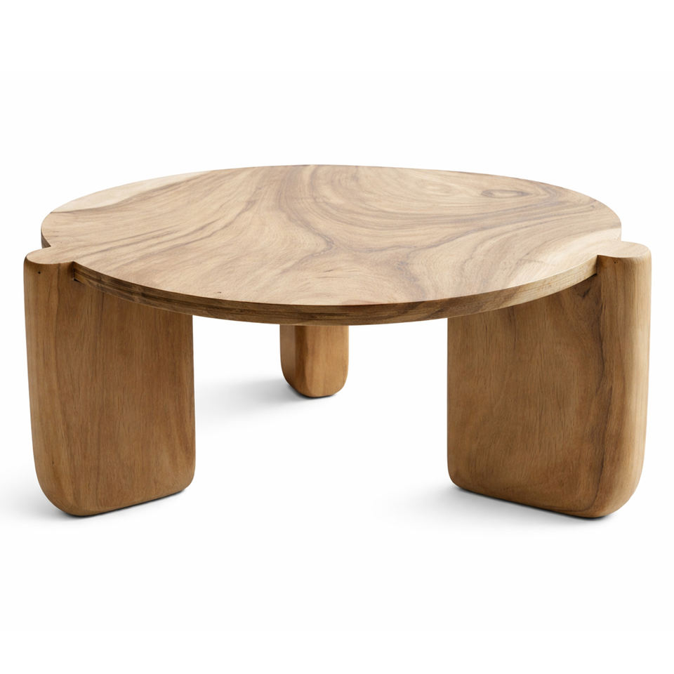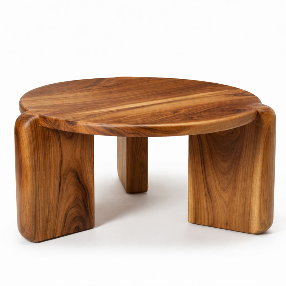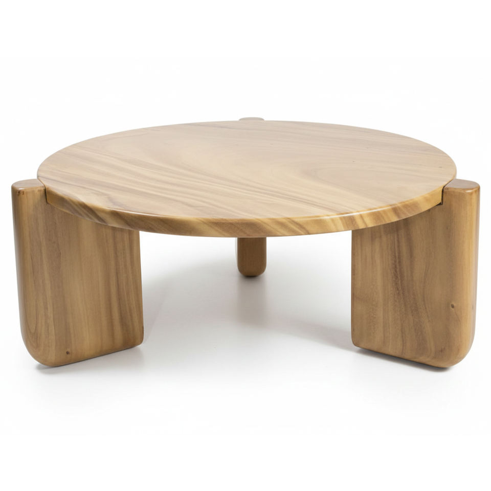 โต๊ะกาแฟทรงกลมไม้สักเกรดส่งออกคุณภาพเยี่ยม สไตล์นอร์ดิก งานแฮนด์เมด ผิวเรียบเนียน สำหรับเฟอร์นิเจอร์วิลล่า ขายส่ง