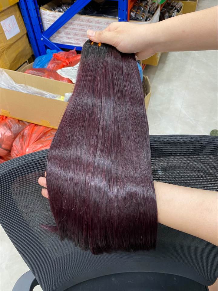 ผมต่อสีเบอร์กันดีแบบคู่จากเวียดนามผมดิบคุณภาพดีที่สุด