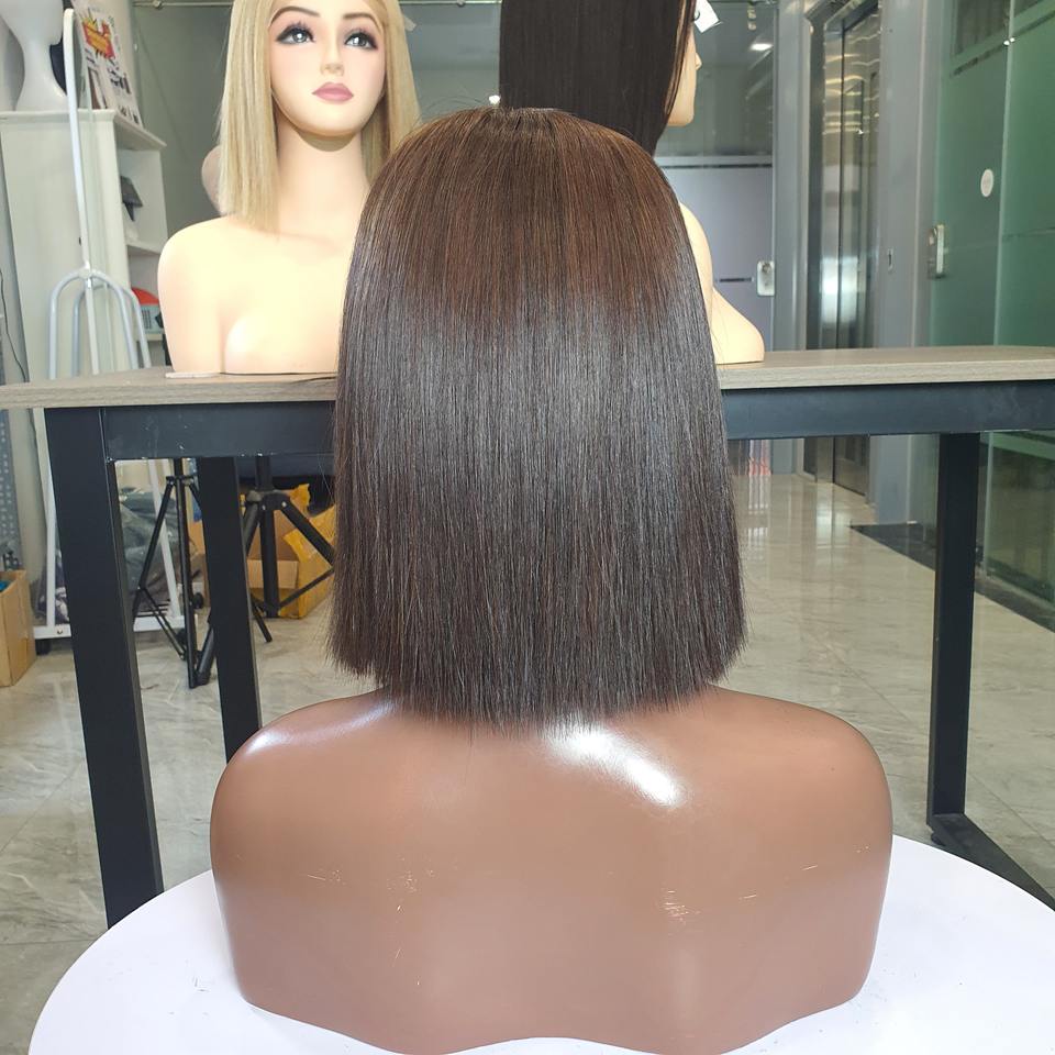 วิกผมบ๊อบสีน้ำตาลเข้มแบบคู่สุดๆผมต่อผมมนุษย์แท้ฐานลูกไม้ยาวสีน้ำตาลเข้ม