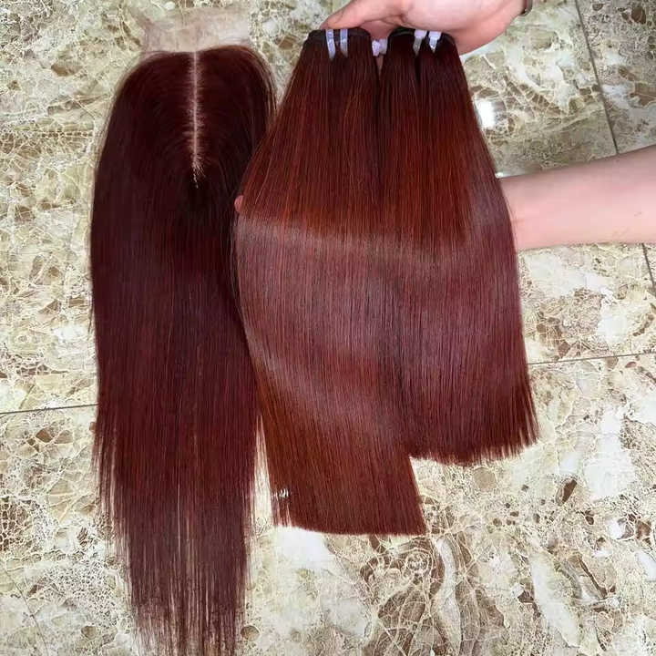 ผมต่อทรงตรงสีเบอร์กันดีทำจากกระดูกผมมนุษย์สองชั้นแบบมีฝาปิด