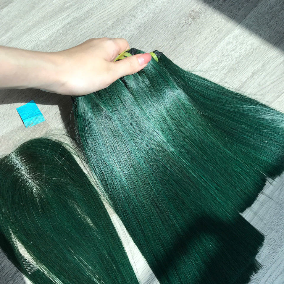 มัดผมเรียเวียดนามแบบคู่สุดๆผมตรงกระดูกกระจกสีเขียวเข้มคุณภาพสูง
