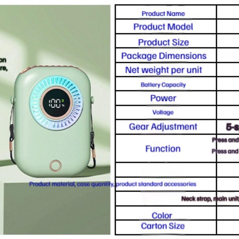 พัดลมคล้องคอแบบแฮนด์ฟรีใช้งานง่ายพร้อมสายคล้อง พัดลมระบายความร้อนแบบกังหันที่เงียบสำหรับกิจกรรมกลางแจ้งและการเดินทาง