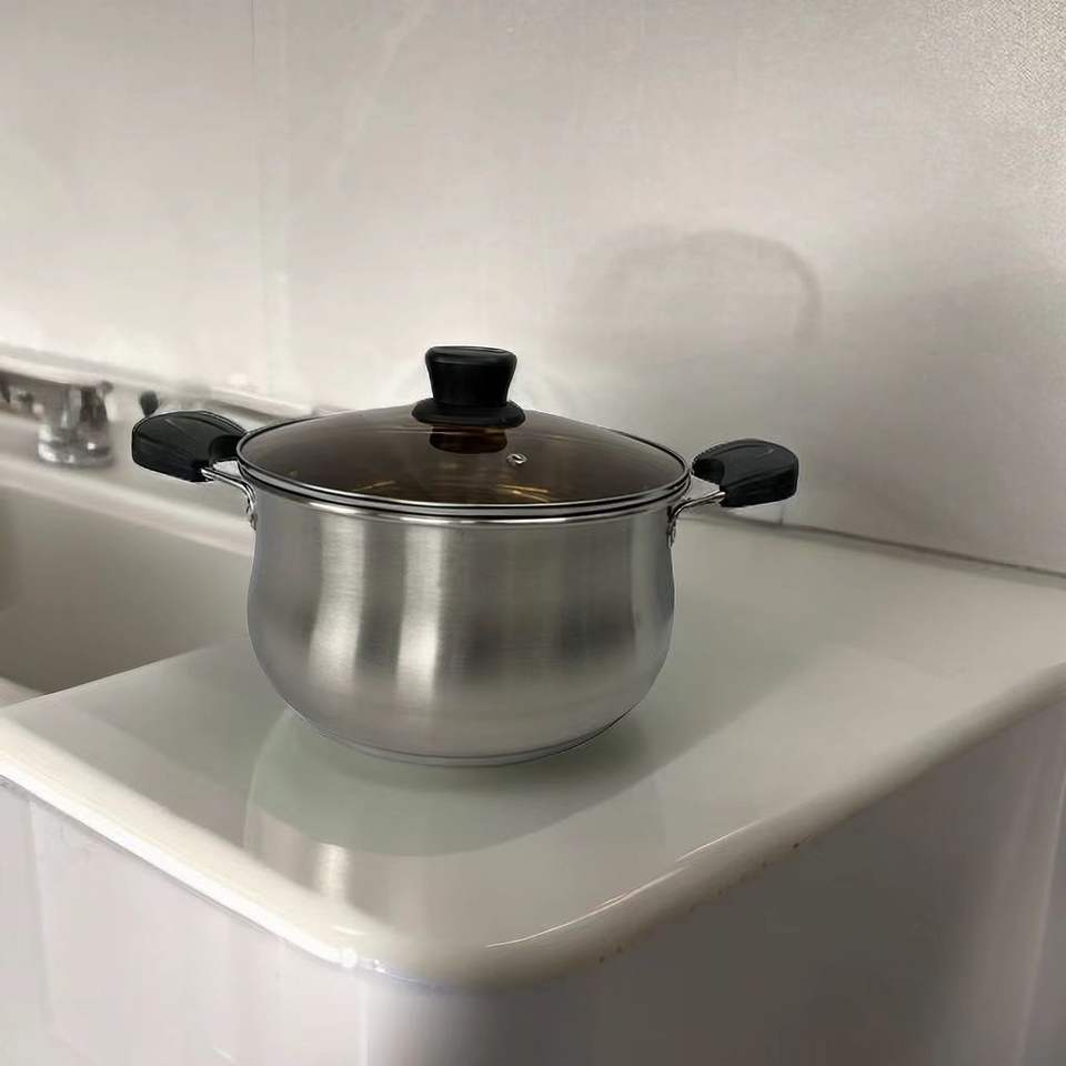หม้อซุปสแตนเลส Super Factory ขนาด 20 ซม. 22 ซม. 24 ซม. 26 ซม. ใช้กับเตาแม่เหล็กไฟฟ้าได้ พร้อมฝาปิด หม้อต้มนม ก้นหลายชั้น