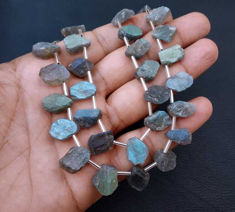 ราคาดีที่สุด คุณภาพเยี่ยม 20 ชิ้น ลาบราดอไรต์ธรรมชาติ สีฟ้าประกายสวยงาม พลอยดิบเจาะด้านบน หินตกแต่งสวน ขายส่ง