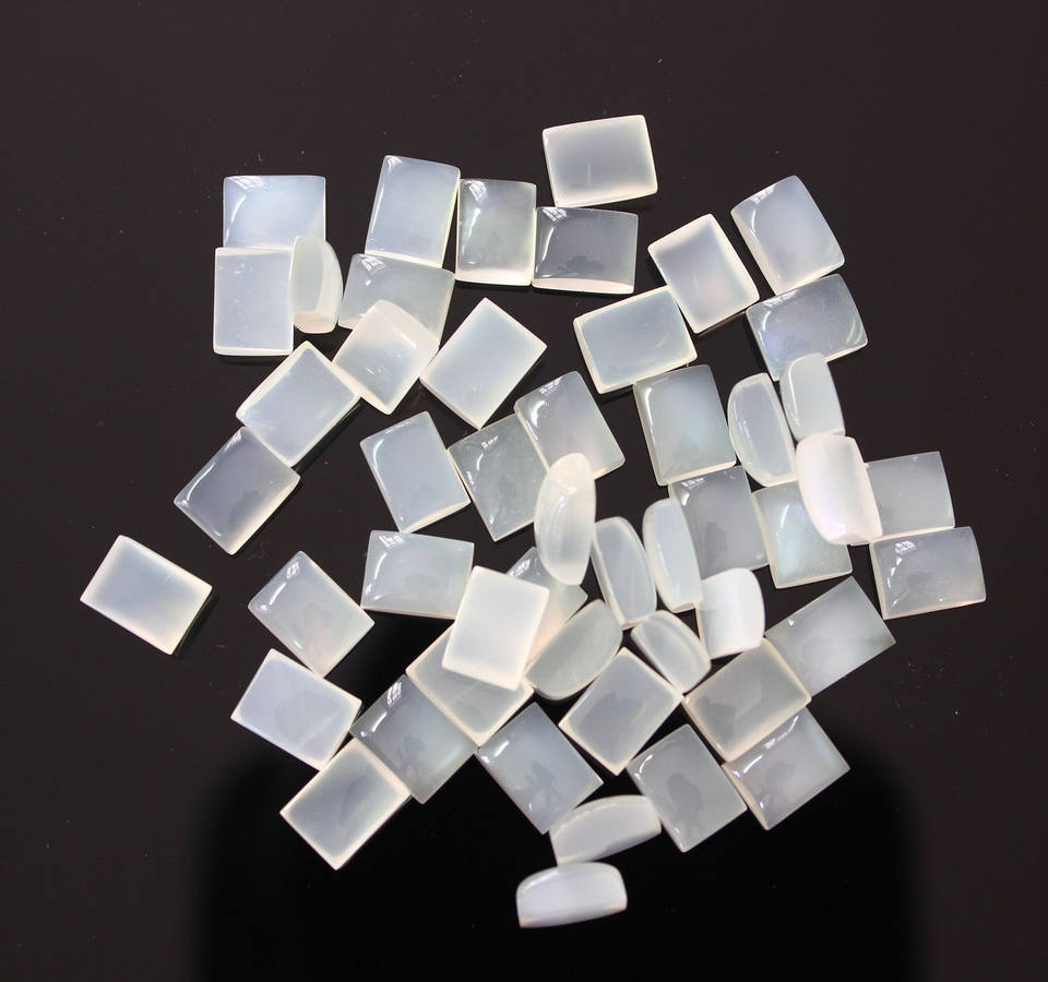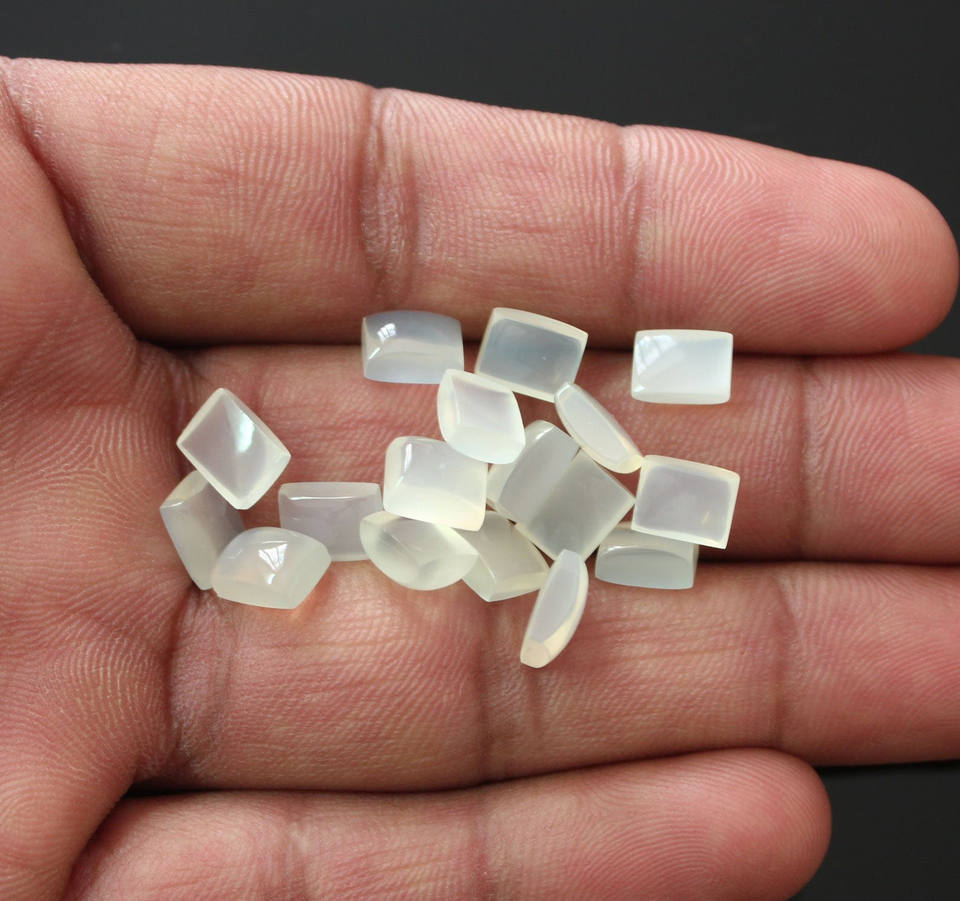 หินมูนสโตนทรงหลังเบี้ยสีขาวธรรมชาติขนาด4x6มม. คุณภาพเยี่ยม