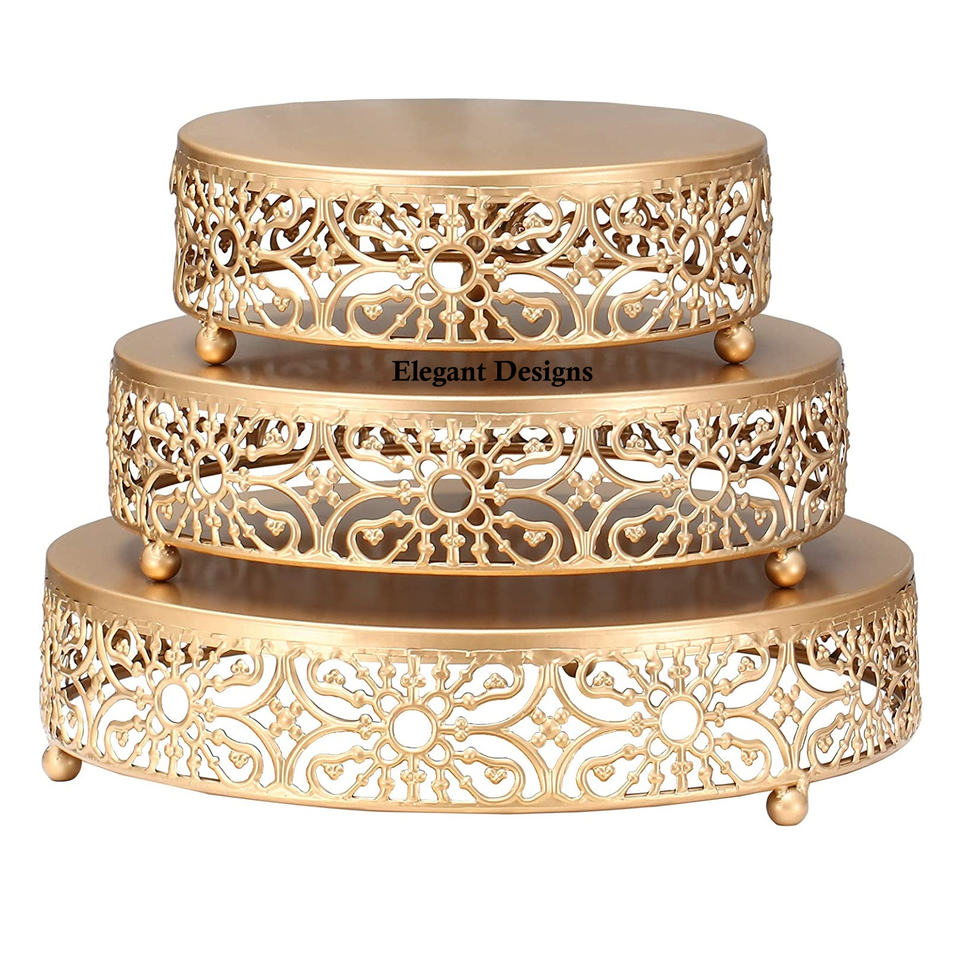 แท่นวางเค้กโลหะชุบทองดีไซน์เนอร์งานแฮนด์เมดอุปกรณ์สำหรับทำเค้กสุดหรูแบบคลาสสิก