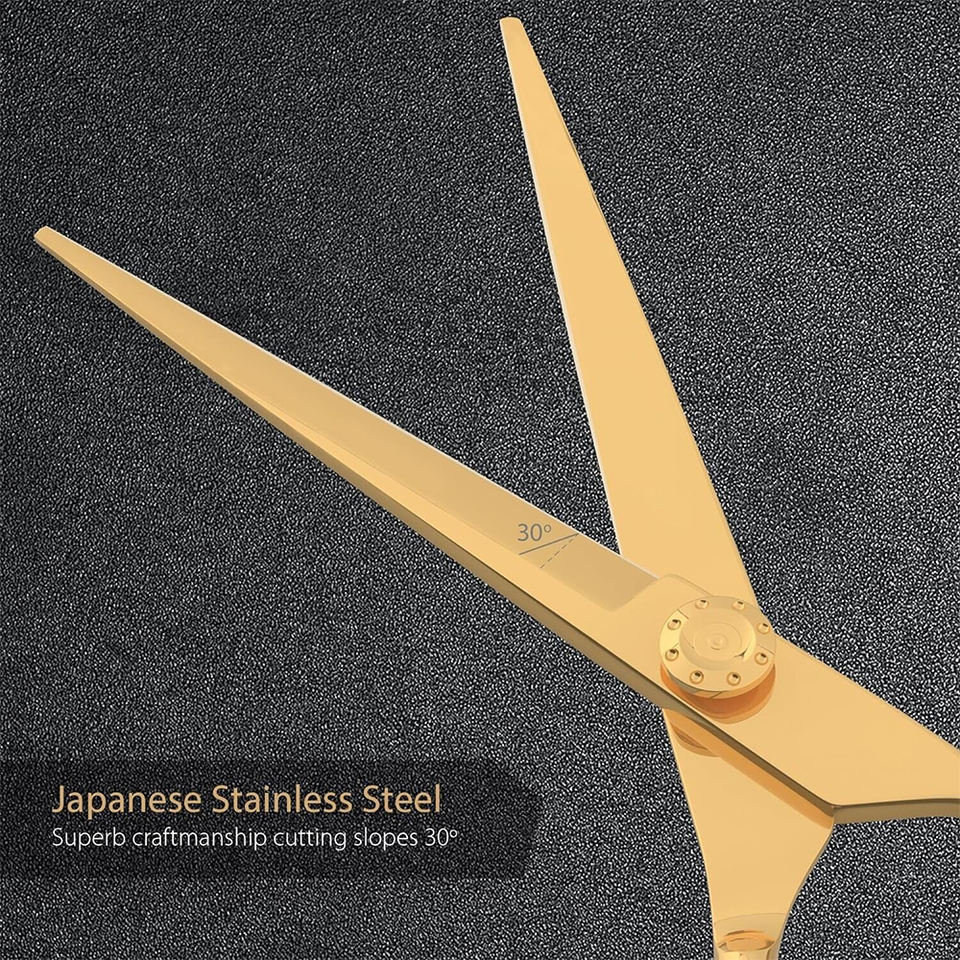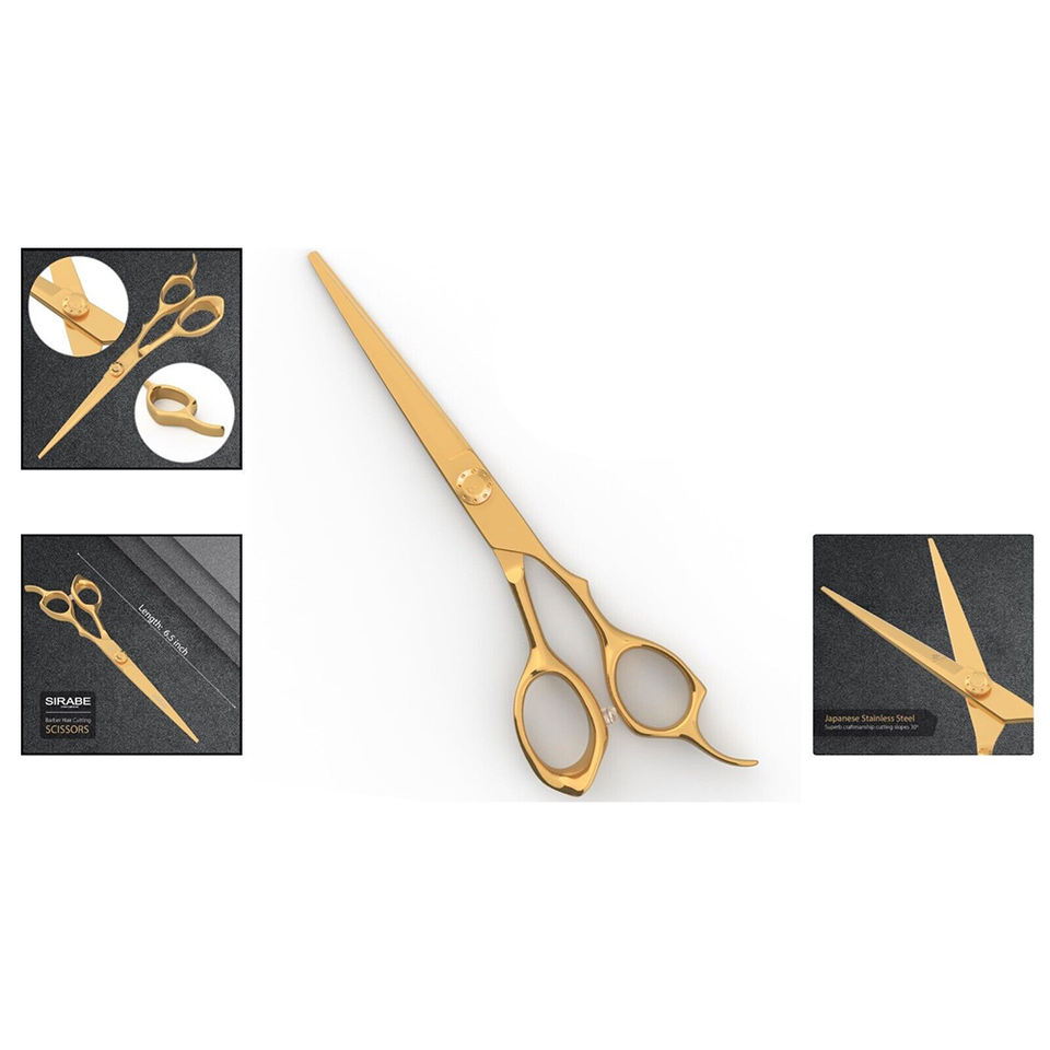 ใบมีดตรงปลายแหลมเคลือบสีทองส่วนที่เหลือของช่างตัดผมมืออาชีพ