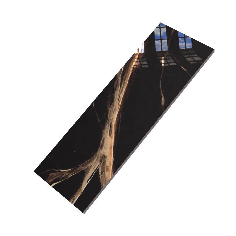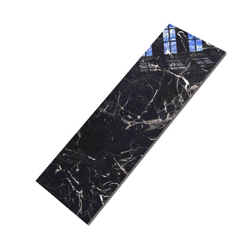 แผ่นหินอ่อนพอร์ซเลนสีดำมันวาวขนาดใหญ่กระเบื้องภายในดีไซน์ทันสมัยกันน้ำกันลื่นทรงสี่เหลี่ยมกระเบื้องคลาสสิก