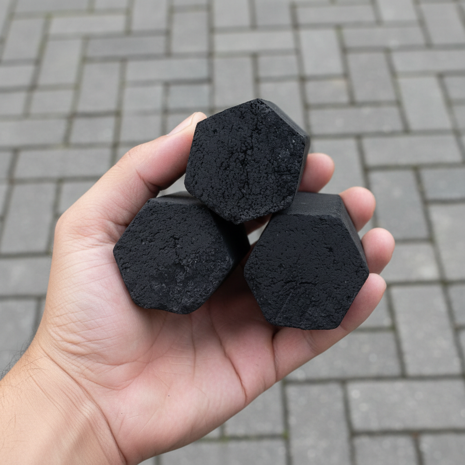 ถ่านอัดแท่งมะพร้าวซุปเปอร์ฮีท รูปทรงหกเหลี่ยม คาร์บอนคงตัว 80 เปอร์เซ็นต์