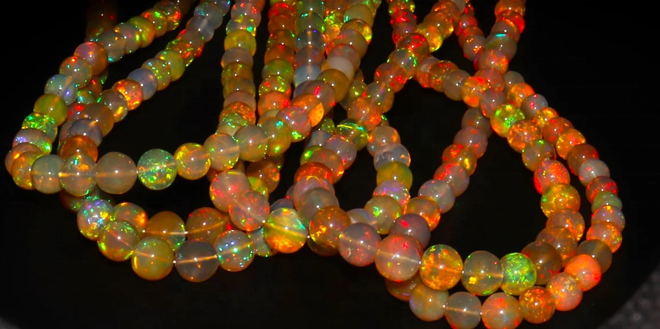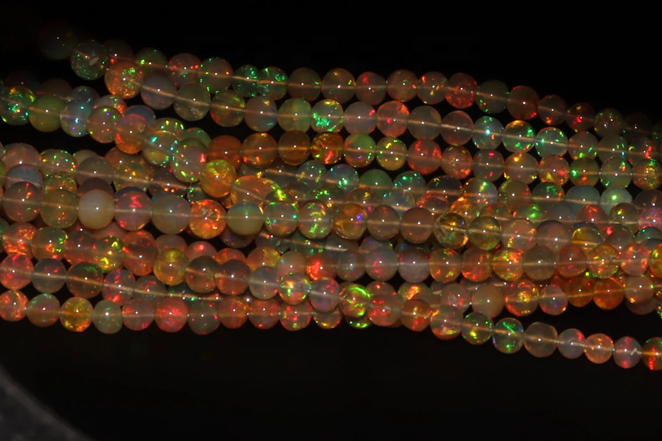 ลูกปัดโอปอลเอธิโอเปียสีเหลืองกลมเรียบ