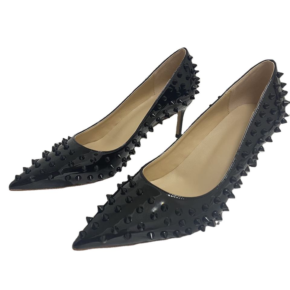 Super High Women Stilettos Heels Rivets Pump Bridal Shoes Pointed Toe Plus Size Custom Logo Geometric Pattern Factory