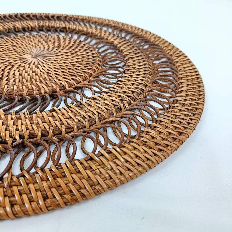 แผ่นรองจานหวายแบบหมุนทำด้วยมือราคาถูกสุดๆ-ของตกแต่งโต๊ะสไตล์โบฮีเมียนและแขวนผนังของตกแต่งบ้านแนววินเทจ