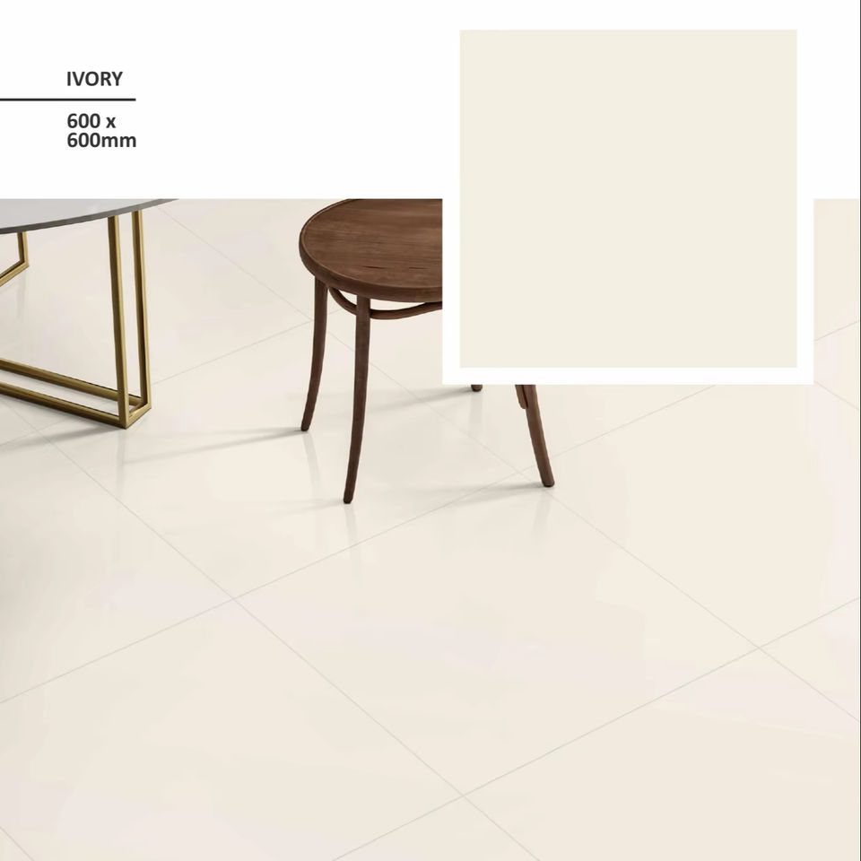 วัสดุเซรามิกเคลือบเงาสีซุปเปอร์งาช้างนาโนกระเบื้องปูพื้นละลายเกลือ60x60มีความหนา7มม. สำหรับพื้นห้องครัวห้องน้ำ