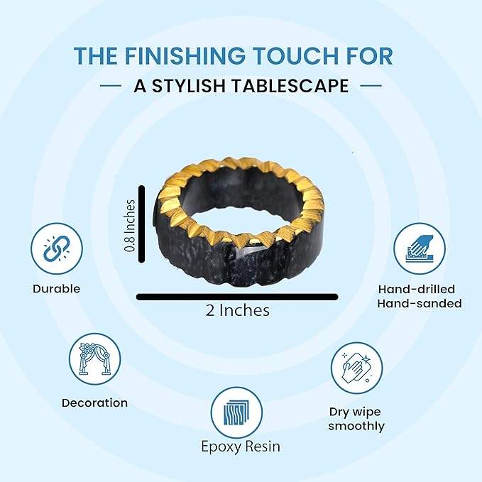 แหวนผ้าเช็ดปากแบบชนบทสุดหรูทำจากไม้รูปทรงวินเทจและเรซิ่นอีพ็อกซี่ของตกแต่งโต๊ะสำหรับงานแต่งงานแบบพิเศษ