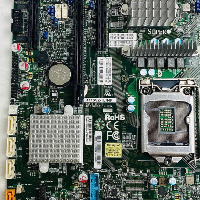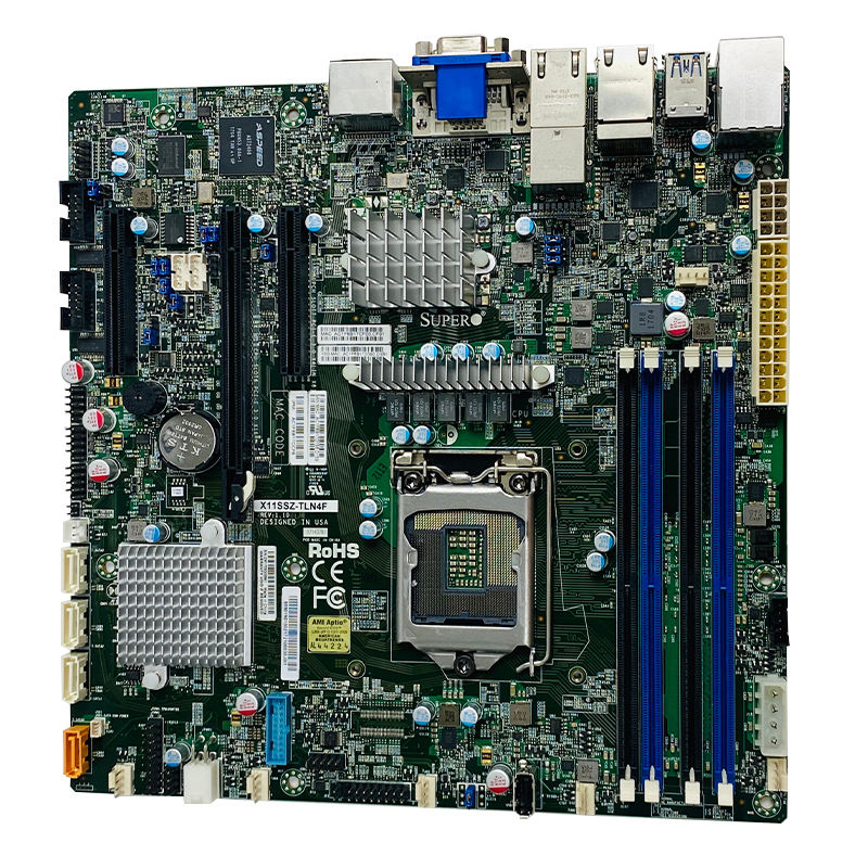 เมนบอร์ดซูเปอร์ไมโคร X11SSZ-TLN4F ช่องทางเดียวขึ้นอยู่กับชิปเซ็ต C236และมีพอร์ตเครือข่าย4พอร์ตบนบอร์ด