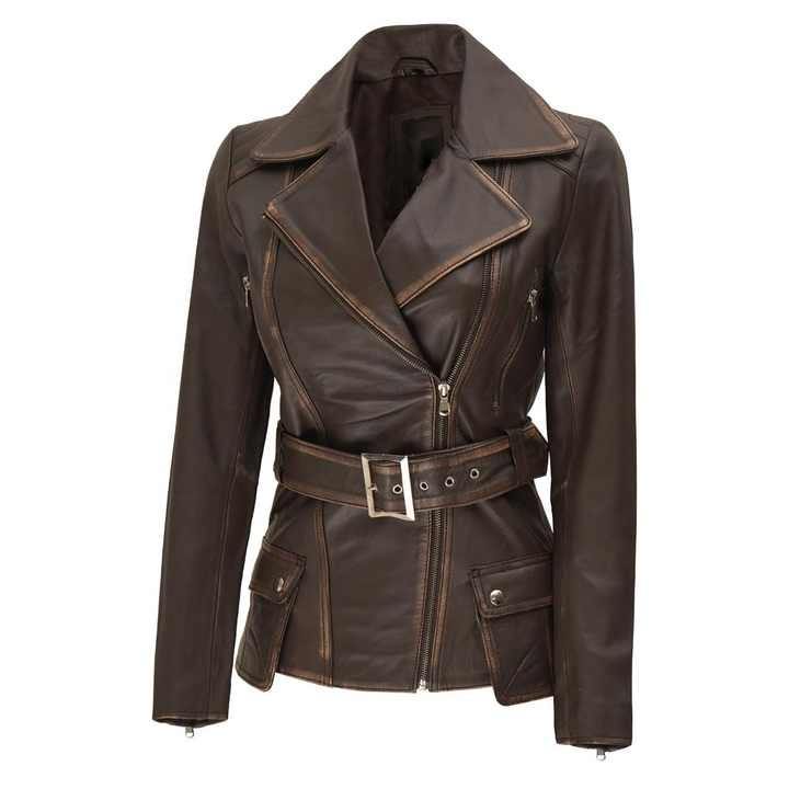 ใหม่ล่าสุดเสื้อแจ็กเก็ตหนังยาวกันน้ำสำหรับผู้หญิงสีน้ำตาลและกระเป๋ามีฝาปิดสองช่อง