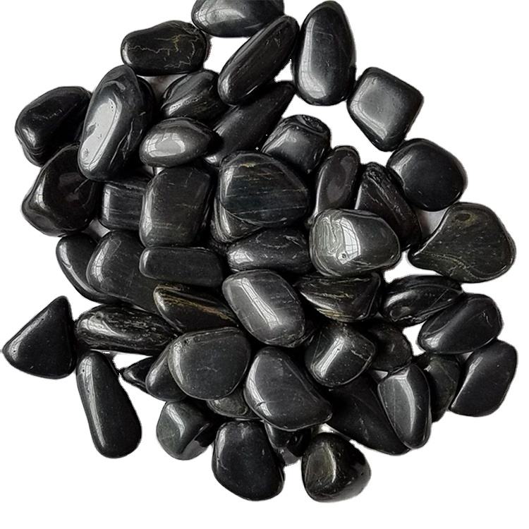 หินกรวดแม่น้ำธรรมชาติสีดำขัดเงาอย่างดี สำหรับตกแต่งสวนทั้งภายนอกและภายใน มีจำหน่าย