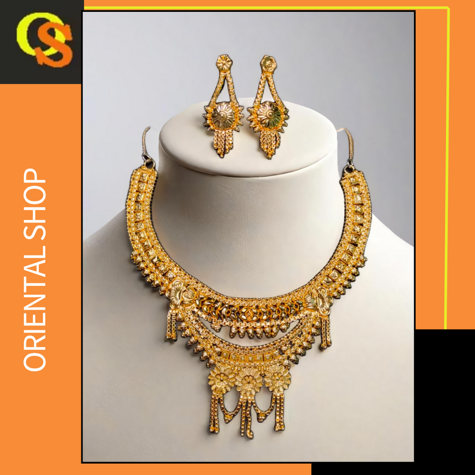 ชุดต่างหูสร้อยคอสุดพิเศษพร้อมสร้อยคอชุบทอง22K ชุดเครื่องประดับสำหรับผู้หญิงชุดสร้อยคอต่างหู