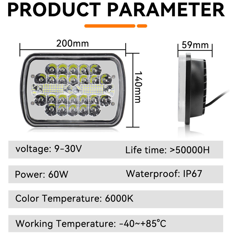 ไฟหน้าอลูมิเนียม3ลูกศร LED 6000K กันน้ำ100W 5x7นิ้วไฟตัดหมอก IP67 12V 10000 Lumens