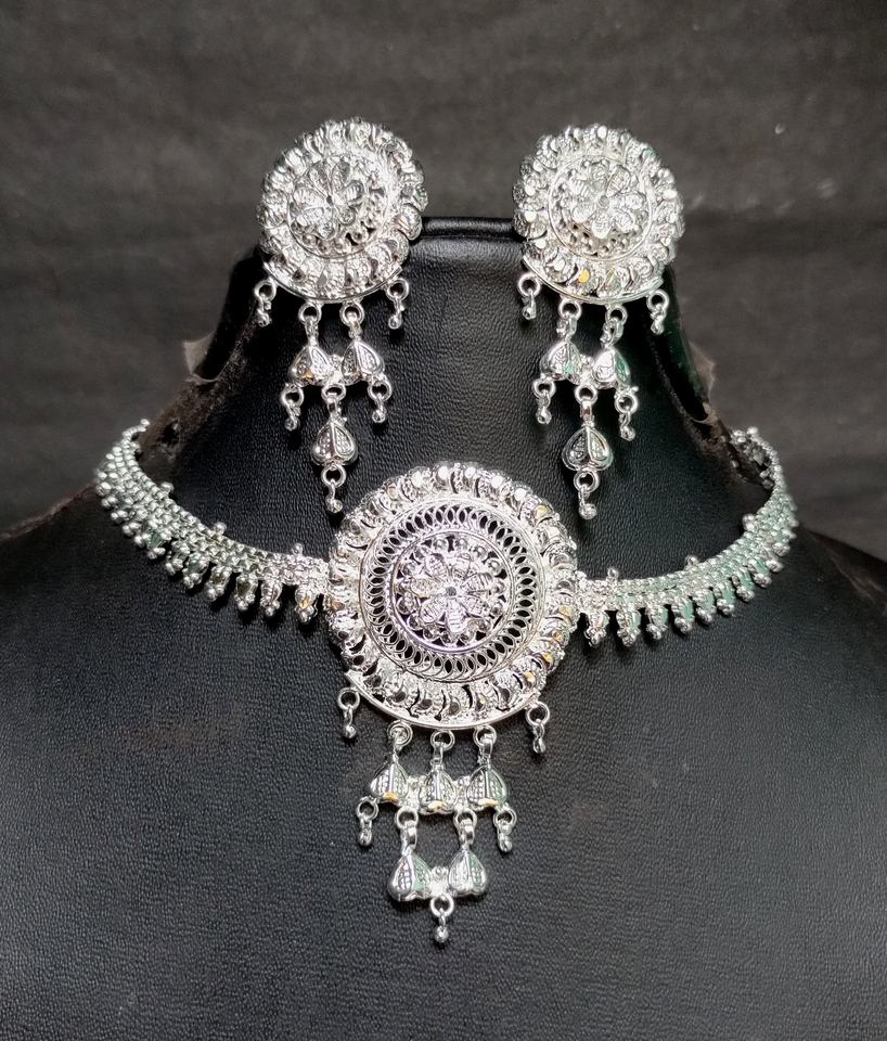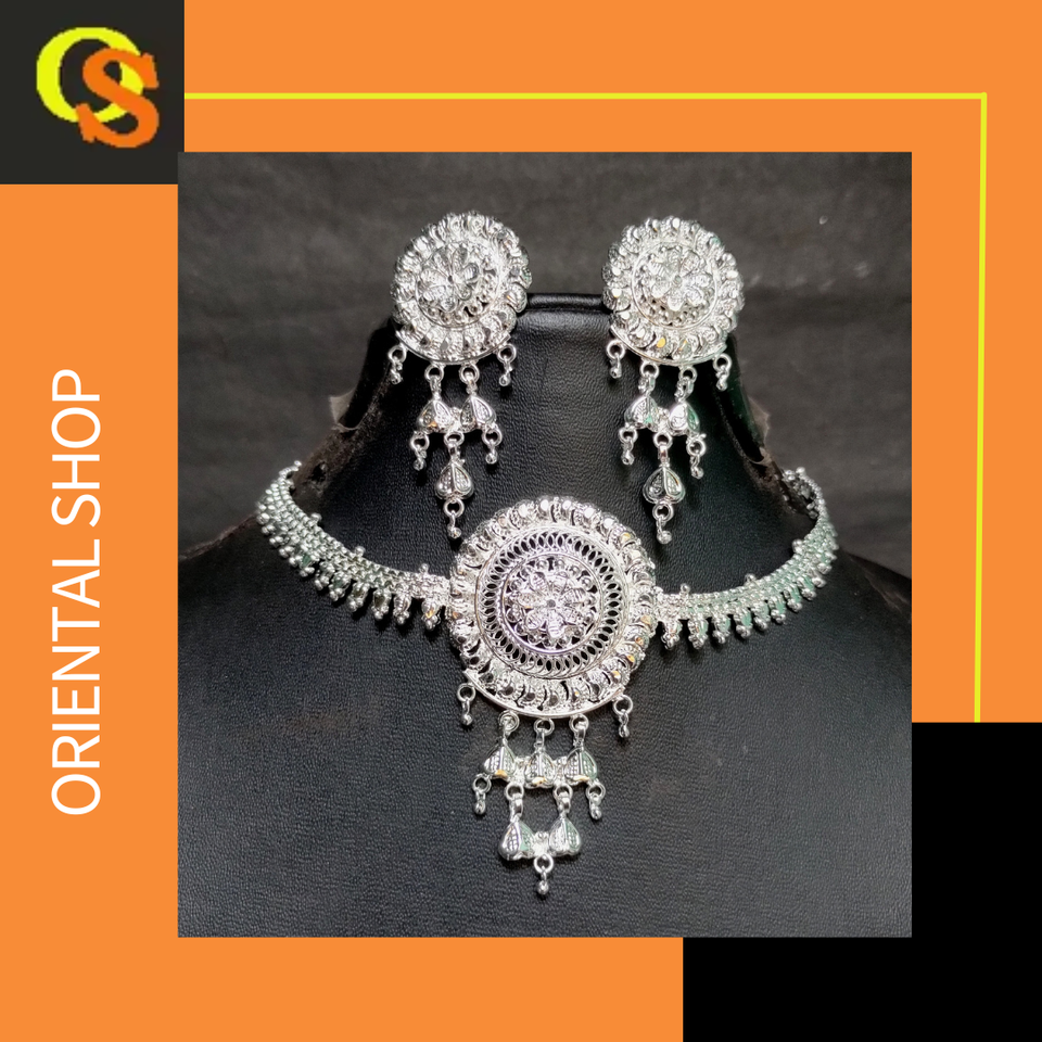 Super Premium Grade Silver Plated Necklace Earrings Ring Set with Luxury Style Jewelry Set for Sale by Indian Exporters